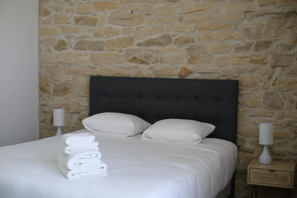 Une chambre confortable et lumineuse, idéale pour un séjour calme à deux pas de Bourgoin-Jallieu. Matériaux authentiques, ambiance douce et literie premium pour une nuit reposante au cœur du Domaine.