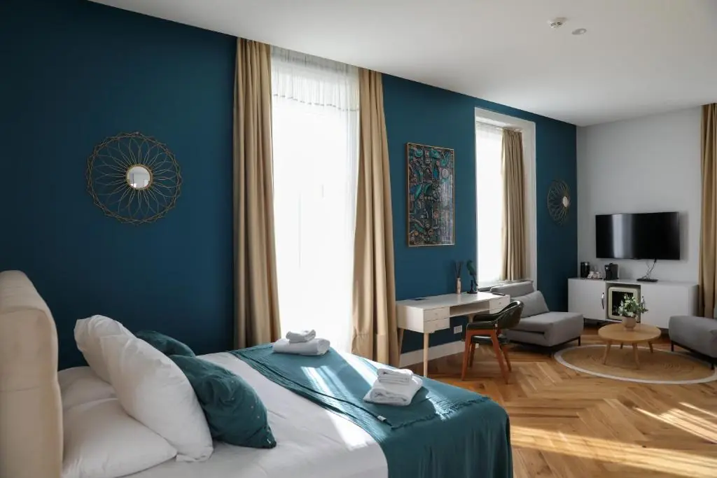 Les Suites Luxe conjuguent avec harmonie le caractère historique de la Maison de Maître et une décoration contemporaine soignée.